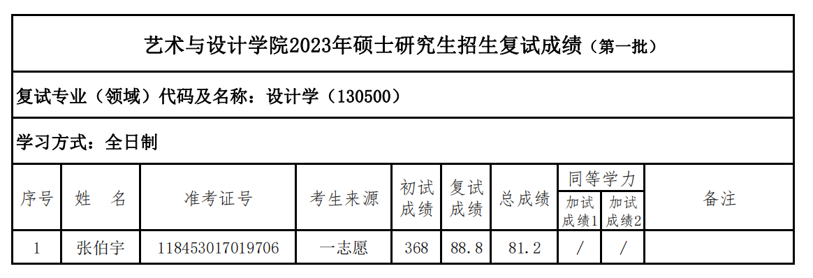廣東工業(yè)大學(xué)藝術(shù)與設(shè)計(jì)學(xué)院2023年復(fù)試成績公示(一志愿)
