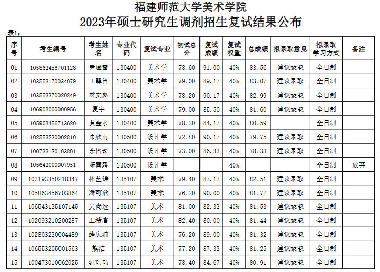 福建師范大學美術(shù)學院2023年考研調(diào)劑復試結(jié)果 發(fā)布時間:2023-04-11 福建師范大學美術(shù)學院2023年考研調(diào)劑復試結(jié)果 上一篇:福建師范大學美術(shù)學院2023年考研復試結(jié)果 下一篇:福建師范大學美術(shù)學院2024年考研招生目錄及參考書目