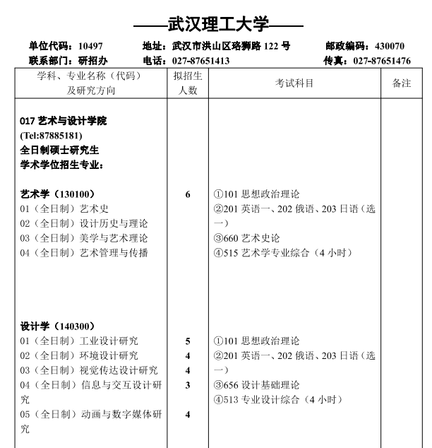 武漢理工大學(xué)藝術(shù)設(shè)計(jì)學(xué)院2024年考研招生目錄