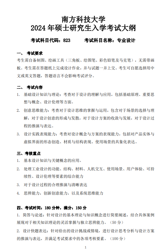 南方科技大學2024年工業(yè)設(shè)計工程考研考試大綱:823專業(yè)設(shè)計 發(fā)布時間:2023-09-18 南方科技大學2024年工業(yè)設(shè)計工程考研考試大綱:823專業(yè)設(shè)計 上一篇:南方科技大學2024年工業(yè)設(shè)計工程考研招生目錄 下一篇:南方科技大學2024年工業(yè)設(shè)計工程保研錄取名單