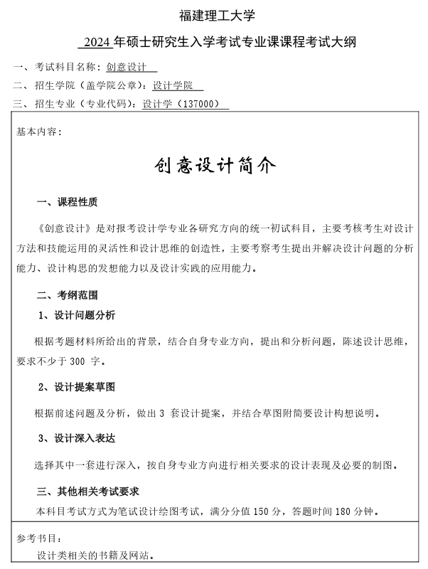 福建理工大學設計學院2024年考研考試大綱:創(chuàng)意設計 發(fā)布時間:2023-09-25 上一篇:福建理工大學設計學院2024年考研考試大綱:綜合設計理論 下一篇:福建理工大學設計學院2023年考研錄取名單