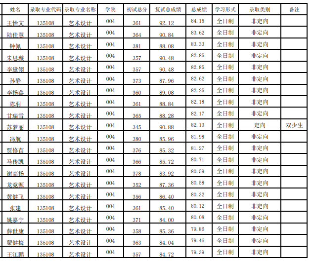 桂林電子科技大學(xué)藝術(shù)設(shè)計(jì)學(xué)院2023年考研復(fù)試錄取名單(一志愿)