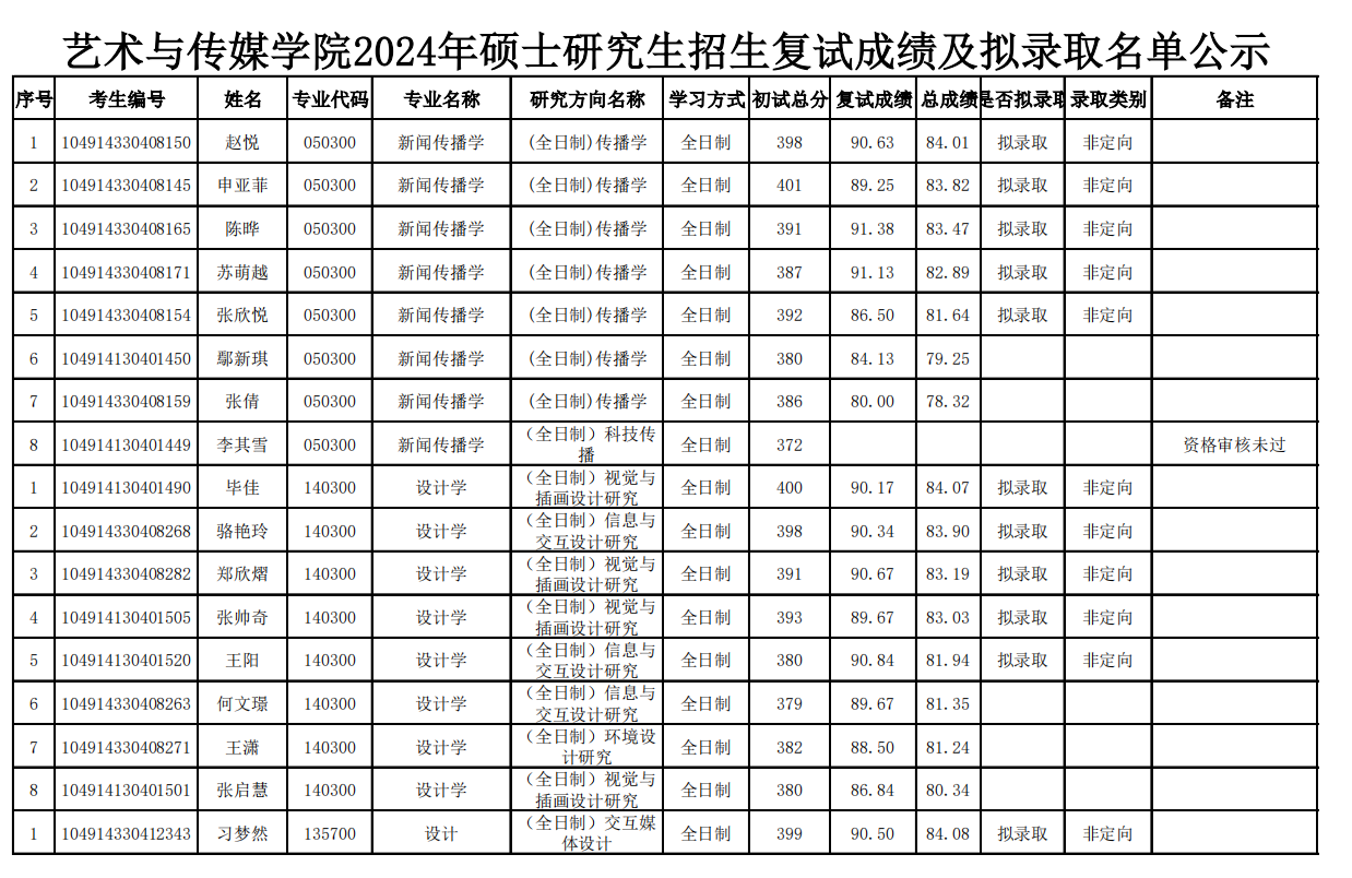 中國地質(zhì)大學藝術(shù)與傳媒學院2024年考研復試錄取結(jié)果 發(fā)布時間:2024-04-01 中國地質(zhì)大學藝術(shù)與傳媒學院2024年考研復試錄取結(jié)果 上一篇:中國地質(zhì)大學藝術(shù)與傳媒學院2024年考研復試分數(shù)線 下一篇:中國地質(zhì)大學工業(yè)設(shè)計考研2024年考研復試錄取名單