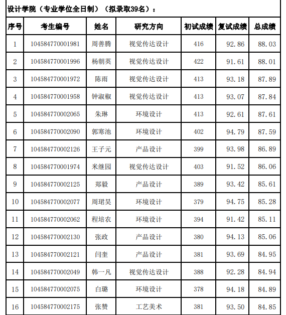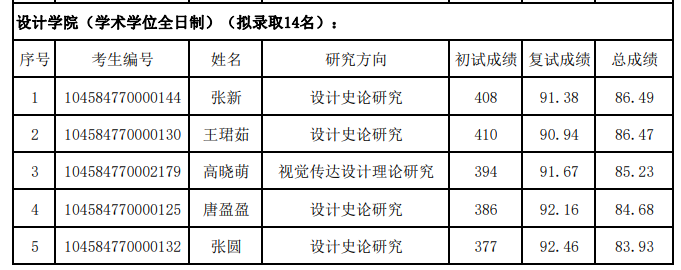 山東藝術(shù)學(xué)院設(shè)計(jì)學(xué)院2024年考研復(fù)試錄取名單