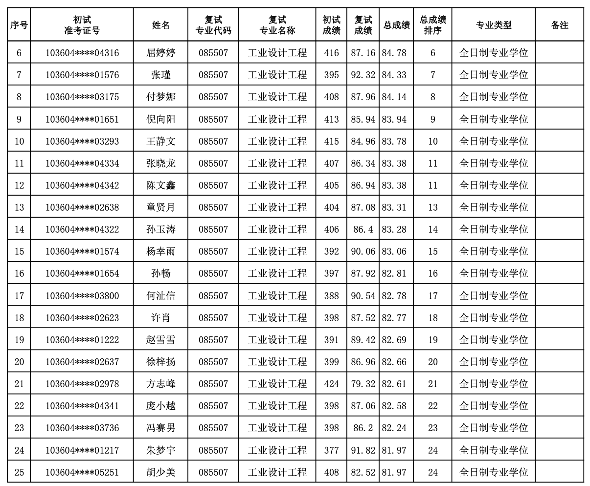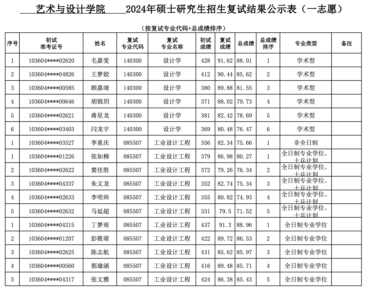 安徽工業(yè)大學(xué)藝術(shù)設(shè)計學(xué)院2024年考研復(fù)試錄取名單(一志愿)