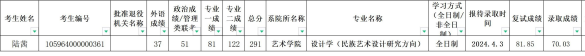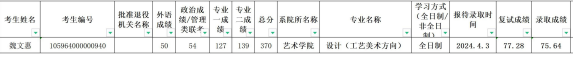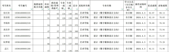 桂林理工大學藝術學院2024年考研復試錄取名單(一志愿) 發(fā)布時間:2024-04-04 桂林理工大學藝術學院2024年考研復試錄取名單(一志愿) 上一篇:桂林理工大學2023年考研真題-840藝術專業(yè)綜合 下一篇:桂林理工大學藝術學院2024年考研錄取名單(總)