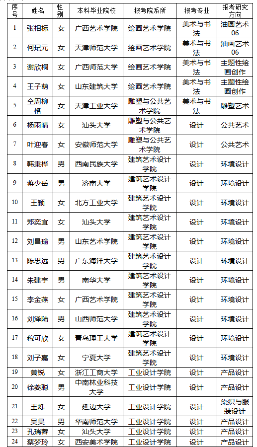廣州美術(shù)學(xué)院2025年保研復(fù)試名單通知(校外)