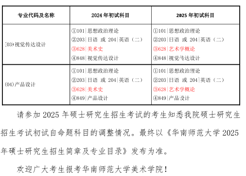 華南師范大學(xué)美術(shù)學(xué)院2025年考研考試 (初試)科目調(diào)整的公告