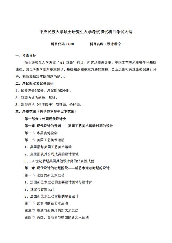中央民族大學(xué)美術(shù)學(xué)院2025年考研考試大綱:630設(shè)計理論 發(fā)布時間:2024-10-08 中央民族大學(xué)美術(shù)學(xué)院2025年考研考試大綱:630設(shè)計理論 上一篇:中央民族大學(xué)美術(shù)學(xué)院2025年考研招生目錄及招生人數(shù) 下一篇:中央民族大學(xué)美術(shù)學(xué)院2025年保研錄取名單