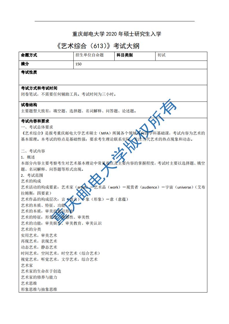 重慶郵電大學(xué)2020年考研考試大綱—613藝術(shù)綜合 發(fā)布時間:2019-09-01 重慶郵電大學(xué)2020年考研考試大綱—613藝術(shù)綜合 上一篇:重慶郵電大學(xué)傳媒藝術(shù)學(xué)院2020年考研招生目錄及參考書目 下一篇:重慶郵電大學(xué)2020年考研考試大綱—821藝術(shù)設(shè)計理論