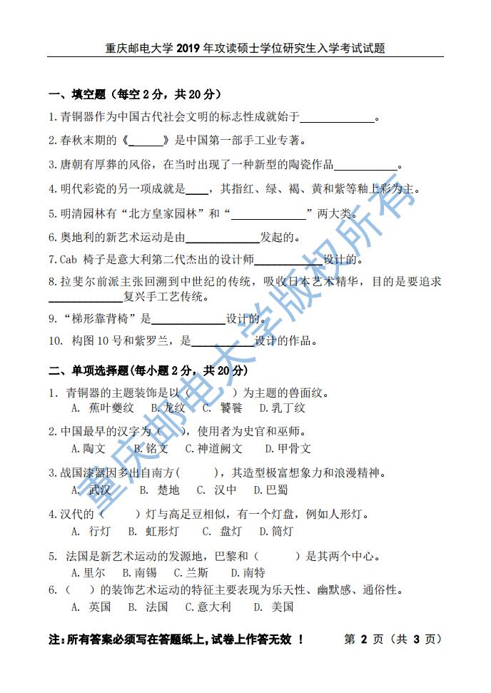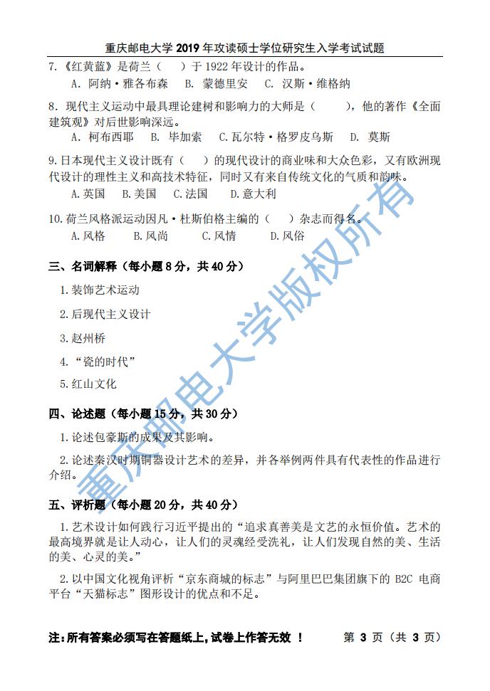重慶郵電大學傳媒藝術學院2019年考研真題—821藝術設計理論 發(fā)布時間:2019-09-01 重慶郵電大學傳媒藝術學院2019年考研真題—821藝術設計理論 上一篇:重慶郵電大學傳媒藝術學院2019年考研真題—613藝術綜合 下一篇:重慶郵電大學2020年考研復試分數(shù)線公告