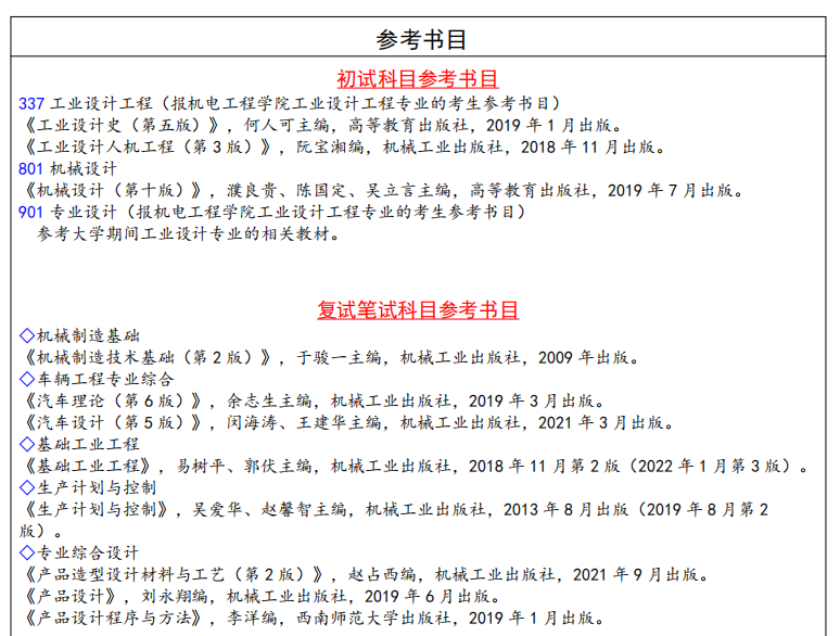 長(zhǎng)春工業(yè)大學(xué)機(jī)電工程學(xué)院2025年工業(yè)設(shè)計(jì)考研招生目錄、招生人數(shù)及參考書目