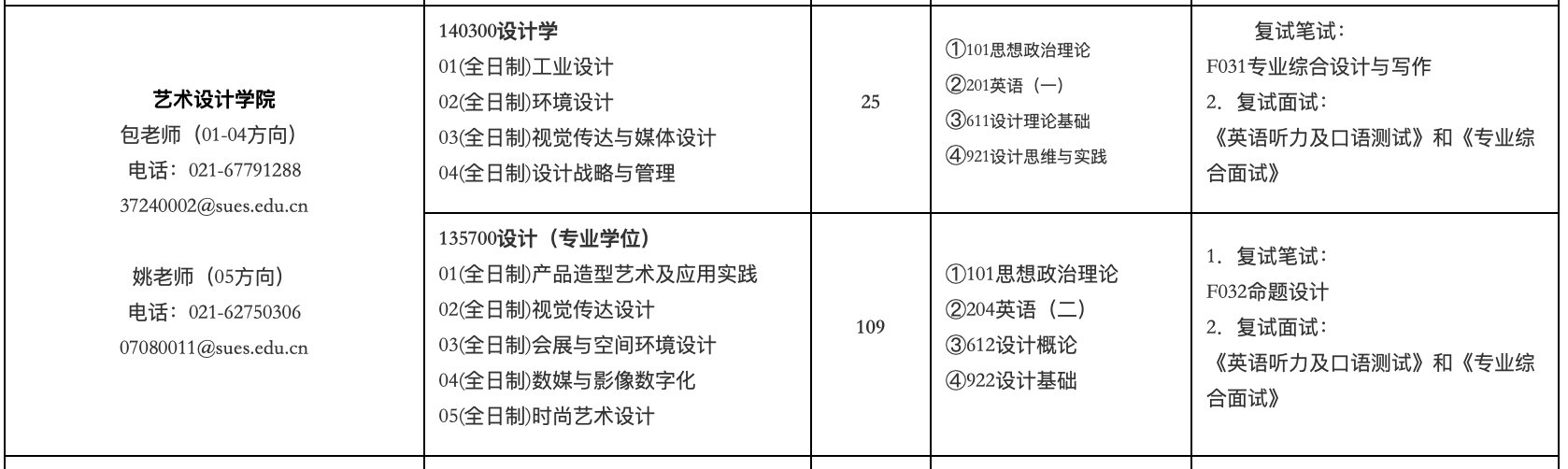 上海工程技術大學藝術設計學院2025年考研招生目錄及招生人數(shù) 發(fā)布時間:2024-10-05 上一篇:上海工程技術大學藝術設計學院2025年考研考試大綱及參考書目:922設計基礎 下一篇:上海工程技術大學2025年考研復試分數(shù)線發(fā)布:設計學140300/設計135700