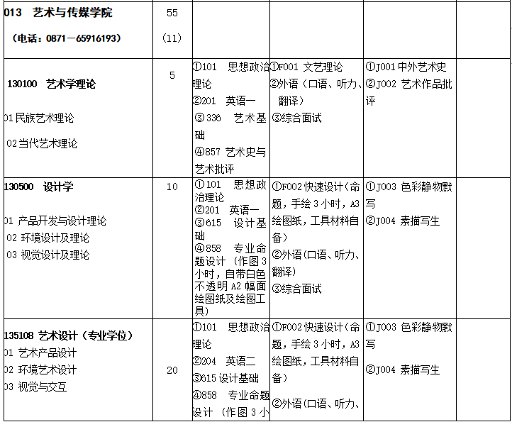 昆明理工大學(xué)藝術(shù)與傳媒學(xué)院2020年考研招生目錄(全日制)