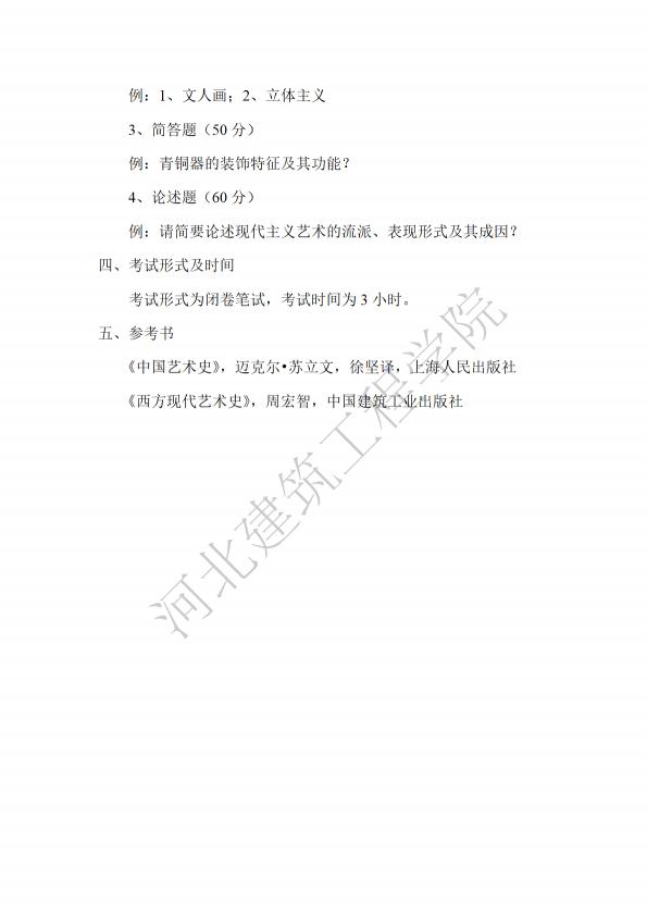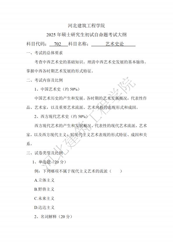 河北建筑工程學(xué)院建筑與藝術(shù)學(xué)院2025年考研參考書目及考試大綱:702藝術(shù)史論