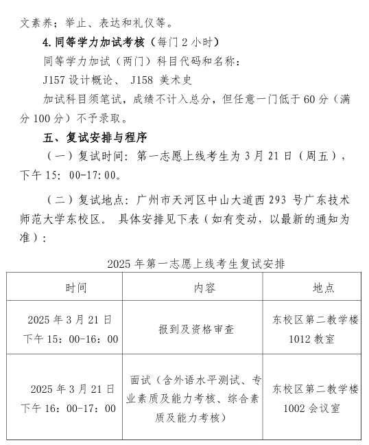 廣東技術(shù)師范大學美術(shù)學院2025年考研復(fù)試內(nèi)容發(fā)布 發(fā)布時間:2025-03-13 廣東技術(shù)師范大學美術(shù)學院2025年考研復(fù)試內(nèi)容發(fā)布 上一篇:廣東技術(shù)師范大學美術(shù)學院2025年設(shè)計考研復(fù)試名單(一志愿) 下一篇:廣東技術(shù)師范大學美術(shù)學院2025年考研擬錄取名單(一志愿)