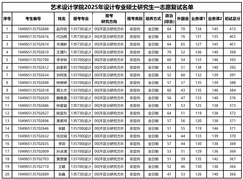 武漢輕工大學(xué)藝術(shù)設(shè)計學(xué)院2025年考研復(fù)試名單 發(fā)布時間:2025-03-14 上一篇:武漢輕工大學(xué)藝術(shù)設(shè)計學(xué)院2025年考研復(fù)試分?jǐn)?shù)線及招生人數(shù) 下一篇:武漢輕工大學(xué)藝術(shù)設(shè)計學(xué)院2025年考研擬錄取名單