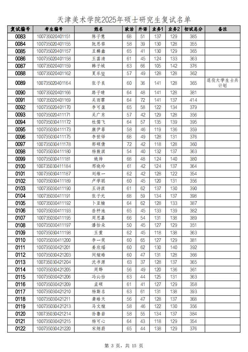 天津美術(shù)學(xué)院2025年考研復(fù)試名單發(fā)布 發(fā)布時間:2025-03-15 天津美術(shù)學(xué)院2025年考研復(fù)試名單發(fā)布 上一篇:天津美術(shù)學(xué)院2025年考研復(fù)試分?jǐn)?shù)線發(fā)布:設(shè)計學(xué)140300/設(shè)計135700 下一篇:沒有了