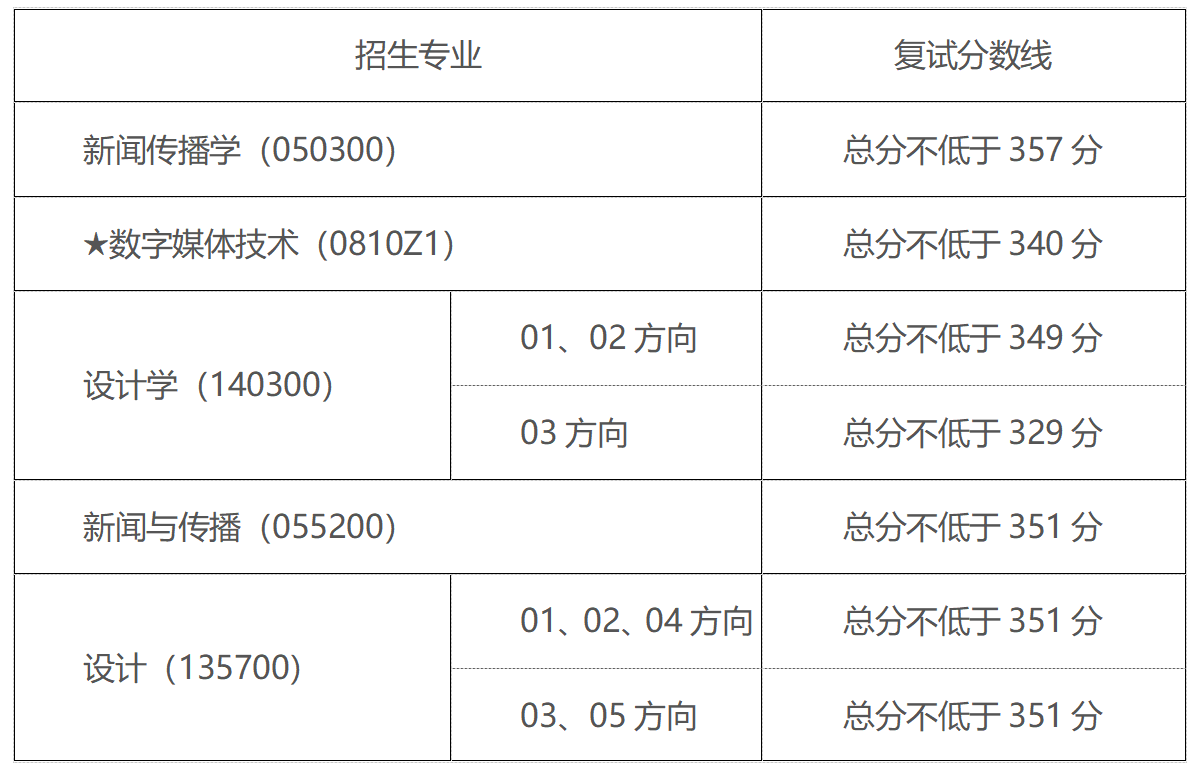 北京郵電大學(xué)數(shù)字媒體與設(shè)計(jì)藝術(shù)學(xué)院2025年考研復(fù)試分?jǐn)?shù)線