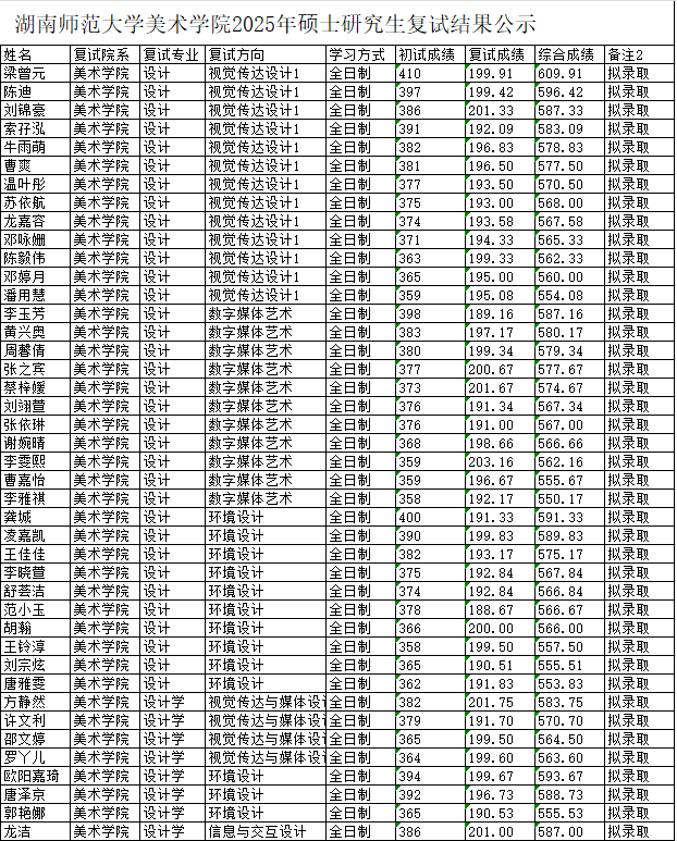湖南師范大學美術(shù)學院2025年考研復試擬錄取名單 發(fā)布時間:2025-03-31 湖南師范大學美術(shù)學院2025年考研復試擬錄取名單 上一篇:湖南師范大學工程與設計學院2025年考研復試擬錄取名單 下一篇:沒有了