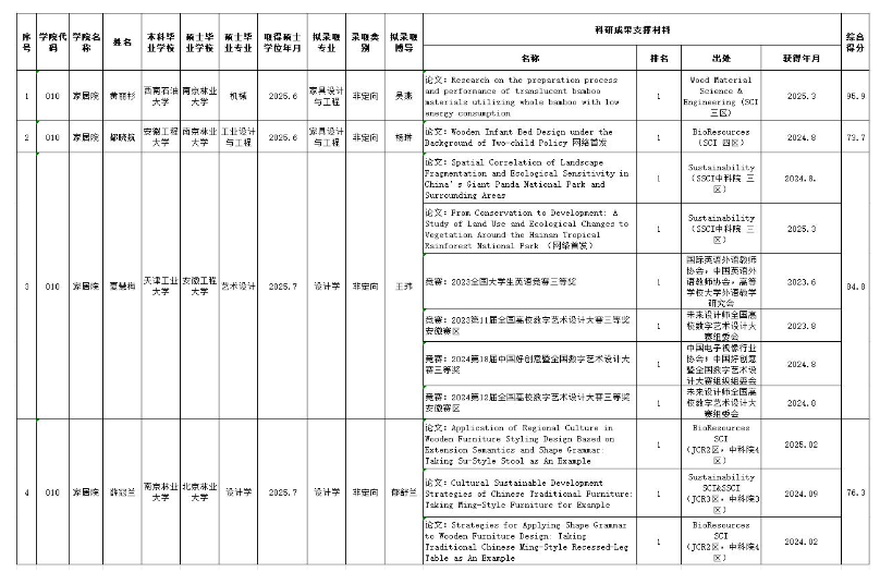 南京林業(yè)大學(xué)2025 年“申請-考核”制博士擬錄取名單公示 發(fā)布時間:2025-05-23 南京林業(yè)大學(xué)2025 年“申請-考核”制博士擬錄取名單公示 上一篇:南京林業(yè)大學(xué)家居與工業(yè)設(shè)計學(xué)院2025年考研復(fù)試名單 下一篇:沒有了