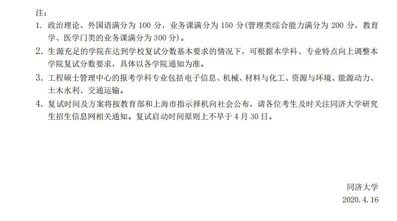 同濟大學(xué)2020年考研復(fù)試分數(shù)線公布 發(fā)布時間:2020-04-16 上一篇:同濟大學(xué)2021年環(huán)境藝術(shù)設(shè)計考研全年課程 下一篇:同濟大學(xué)設(shè)計創(chuàng)意學(xué)院 2020年考研復(fù)試安排公告